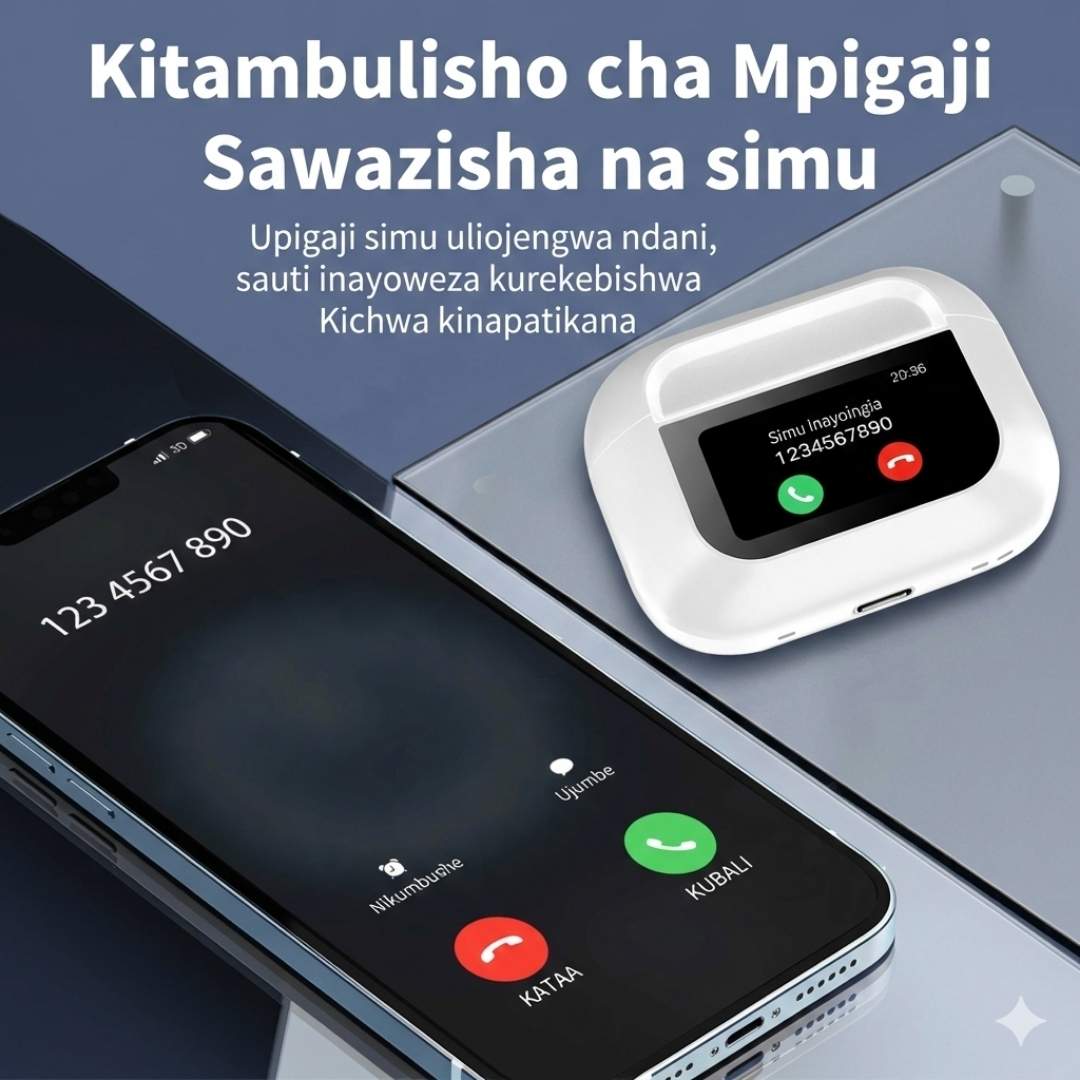 Maelezo ya Bidhaa: Furahia teknolojia mpya ya sauti na A9 Pro mpya kabisa. Hizi sio earphone za kawaida tu; ni mfumo kamili wa sauti mfukoni mwako. Ukiwa na case ya kwanza duniani yenye touch screen, unaweza kudhibiti muziki, simu, na mipangilio bila hata kugusa simu yako.